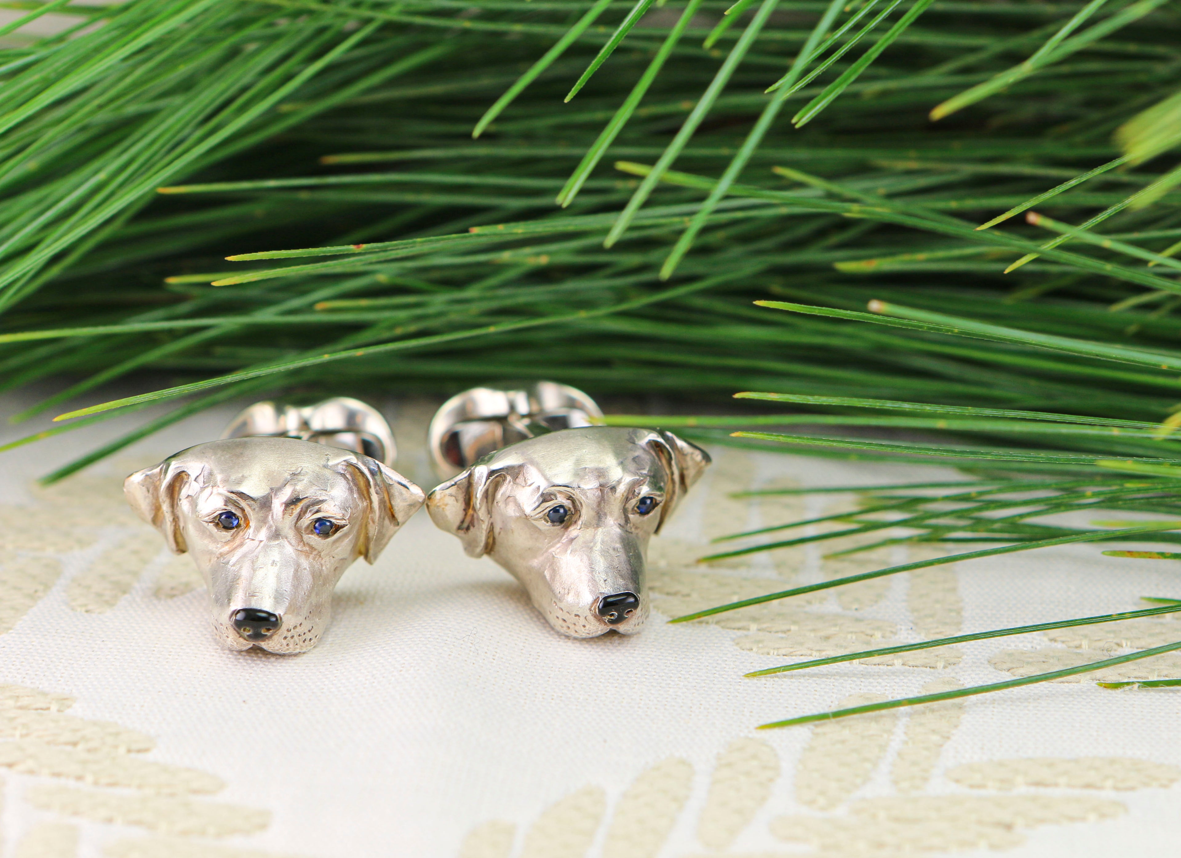 14k Yellow Gold Rabbit Cufflinks with Ruby Eyes
