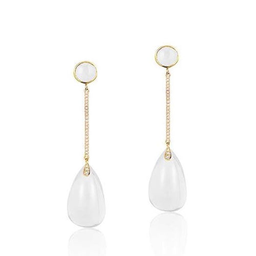 Moon Quartz Drops with Long Earrings with Diamond Bar