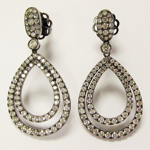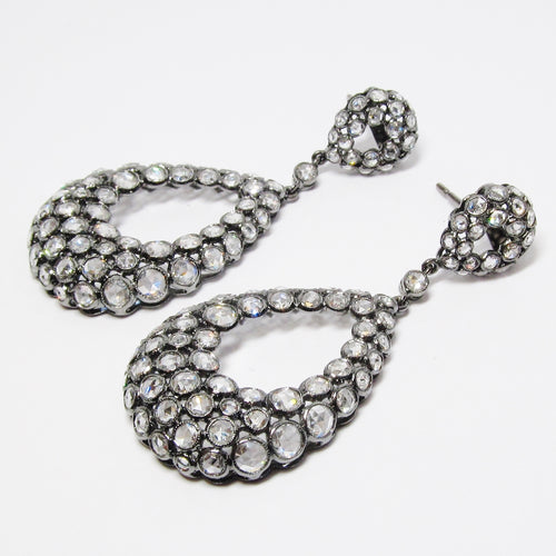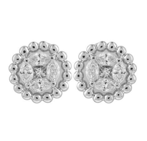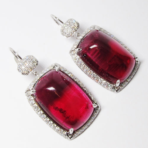 18k White Gold Cushion Shaped Cabochon Rubellite with Diamond Pave Frame Earrings